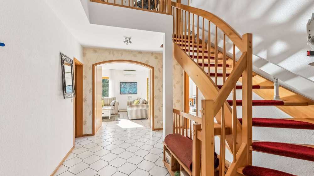 Helle Räume, bodentiefe Fenster nahezu überall sowie überwiegend große Räume sind das Markenzeichen dieses einladenden Hauses.