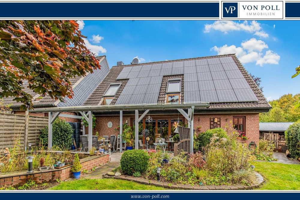 Inmitten einer ruhigen, naturnahen Umgebung erwartet Sie dieses im Jahr 1994 erbaute und liebevoll gepflegte Kettenhaus. Es vereint skandinavische Wohnkultur mit einem durchdachten Energiekonzept und bietet eine außergewöhnlich warme und einladende Atmosphäre. Natürliche Materialien, insbesondere viel sichtbares Holz, schaffen ein behagliches Wohngefühl, das durch eine harmonische Raumaufteilung und lichtdurchflutete Wohnbereiche ergänzt wird.