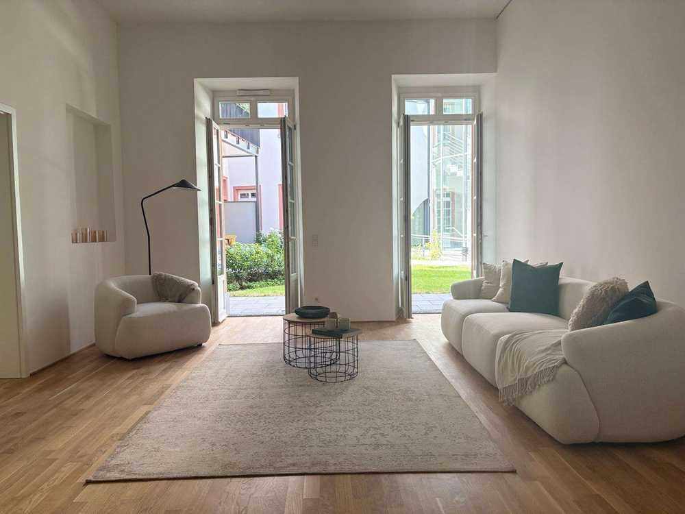 Hier finden Sie Ihren entspannten Ruhepunkt mitten im städtischen Leben. Vor rund 800 Jahren wurde das traditionsreiche Anwesen erstmals urkundlich erwähnt. Die lange Zeit als Patrizierhaus sieht man der denkmalgeschützten prächtigen Fassade, in den für die Stadt so prägenden hellen und roten Sandstein-Tönen, sofort an. Aus Ihrer außergewöhnlichen Wohnung blicken Sie einerseits in einen wohltuend ruhigen, von der Straßenseite aus abgeschlossenen, grünen Innenhof.