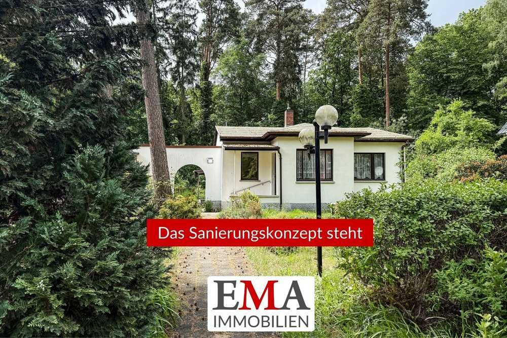 Es handelt sich um ein kleines sanierungsbedürftiges Einfamilienhaus im Bungalowstil mit einem separaten Gästehaus in einer sehr ruhigen und idyllischen Lage direkt an einem Waldstück.