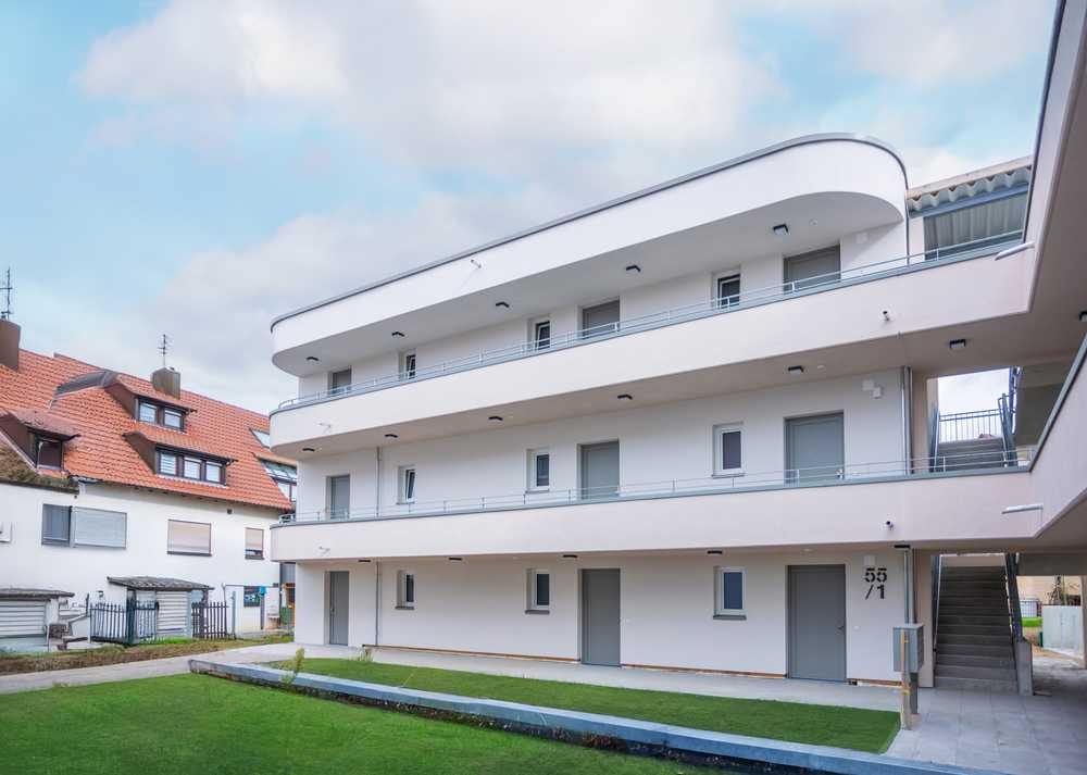 Das Neubauprojekt „Soziale Mitte “ steht für zeitlose Architektur mit markanter Formsprache. Klare Linien schaffen in Kombination mit geschmackvollen Materialien einen besonderen Wiedererkennungswert, große Fensterflächen sorgen für eine gelungene Auflockerung und gewährleisten darüber hinaus sehr helle Innenräume.