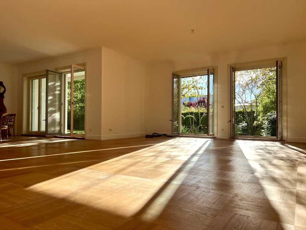 Das Herzstück ist der große Wohn- und Essbereich mit bodentiefen Fenstern, die den Blick ins Grüne freigeben und ein Gefühl von Weite und Ruhe schaffen. Von hier aus gelangt man auf die überdachte Sonnenterrasse, die unmittelbar an den gepflegten Garten grenzt – der perfekte Ort für entspannte Stunden im Freien. Die Küche ist mit einer voll ausgestatteten SieMatic Einbauküche inklusive Markeneinbaugeräten bestückt und bietet viel Platz zum gemeinsamen Kochen. Ein praktischer Hauswirtschaftsraum sorgt für zusätzlichen Stauraum und Ordnung. Die Wohnung verfügt über drei weitere Zimmer, von denen eines als Durchgangszimmer gestaltet ist – ideal als Arbeitszimmer oder Ankleide. Die Wohnung verfügt über 2 Duschbäder, eines davon mit zusätzlicher Badewanne. Ein besonderes Plus ist die Gestaltungsfreiheit: Der Grundriss lässt sich nach Wunsch anpassen, Beispielplanungen wurden den Bildern beigefügt.