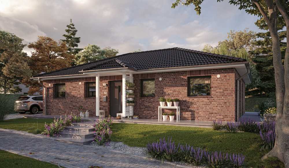 Hier spielt sich alles auf einer Wohnebene ab - Für eine Familie mit zwei Kindern ist der Bungalow 110 ein ideales Zuhause. Er bietet ein gemütliches Wohnzimmer mit Essbereich, ein geräumiges Schlafzimmer und zwei weitere Zimmer. Alle Räume sind dank großer Fenster hell und freundlich. Mit quasi einem Schritt sind Sie mit Ihren Liebsten im Garten und können die Sommerzeit bei einem Grillabend genießen.