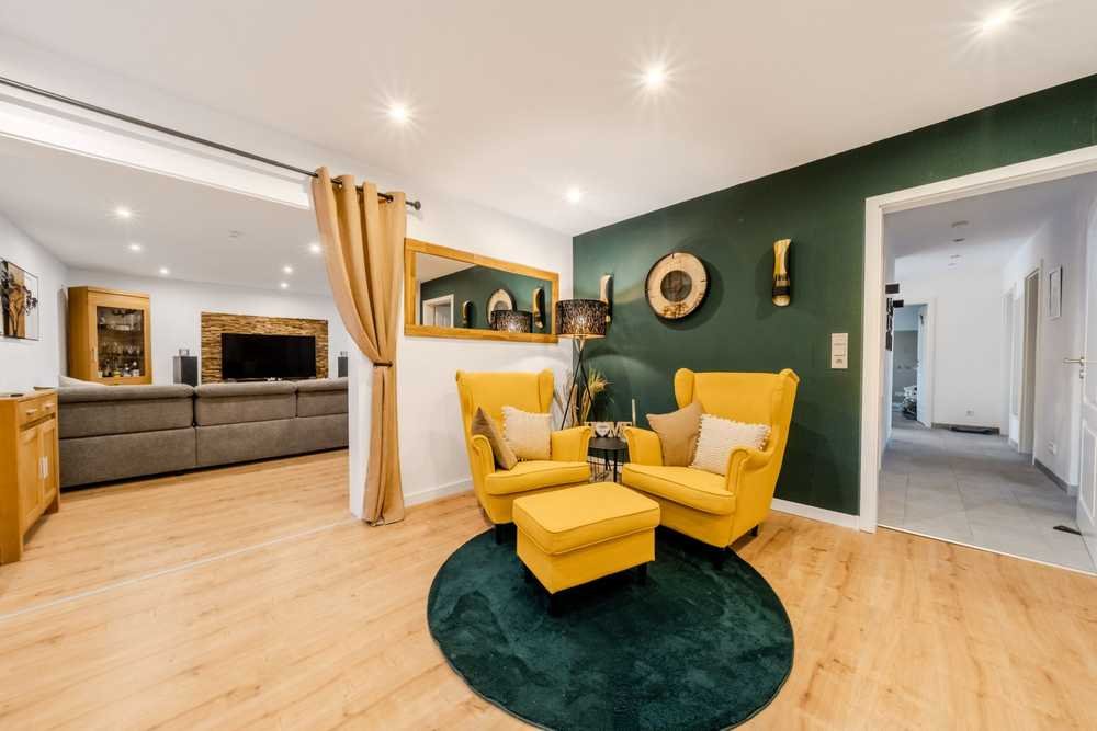 Mit rund 125 m² Wohnfläche überzeugt der Bungalow durch ein großzügiges, stufenfreies Raumkonzept. Der helle Wintergarten mit Heizkörpern und Fußbodenerwärmung wird schnell zum Lieblingsplatz – ob für entspannte Nachmittage mit Blick in den Garten oder gemütliche Abende mit Freunden. Die Teilunterkellerung bietet zusätzlichen Stauraum, und die Garage mit elektrischem Sektionaltor verfügt bereits über vorbereitete Leitungen für eine Wallbox.