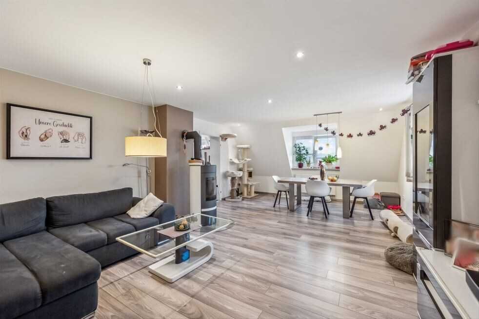 Genießen Sie gemütliche Abende vor dem Kamin oder erleben Sie entspannte Stunden auf der sonnigen Terrasse. Darüber hinaus verfügt das Haus über einen einladenden Balkon, der Ihnen einen wunderbaren Blick ins Grüne bietet. Der geräumige Keller bietet zusätzlichen Stauraum und vielfältige Nutzungsmöglichkeiten. Die Erdgeschosswohnung ist bereits verfügbar.