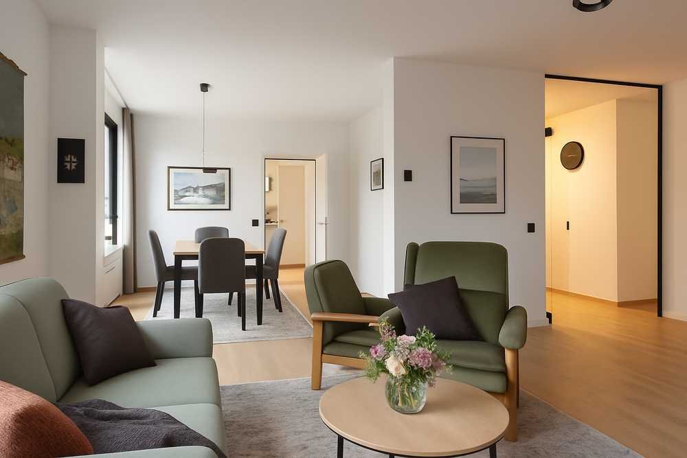 Wohnfläche begeistert durch ihren großzügigen Grundriss, ihren hellen Charakter und