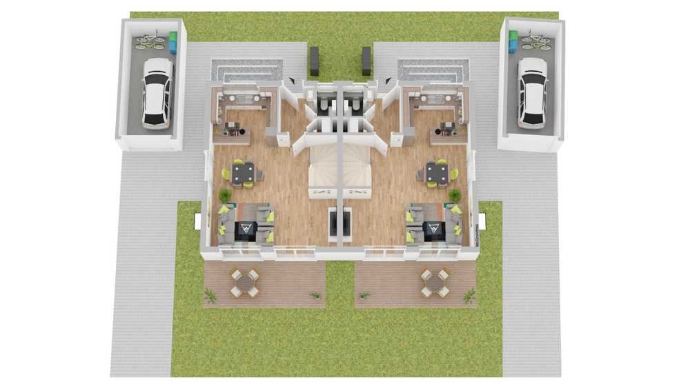 Dieses moderne Doppelhaus ist ein Meisterwerk zeitgemäßer Architektur und klarer Linien. Es entsteht in ruhiger, idyllischer Lage im Herzen von Oberaichen – einem der attraktivsten und gehobensten Ortsteile von Leinfelden-Echterdingen.