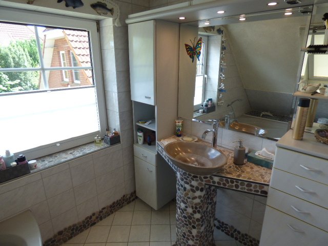 Beheizt wird das Haus über eine Gaszentralheizung aus dem Baujahr. EA:V/Erdgas/BJ1994/129,6kWh/D. Eine EBK gibt es nicht mehr in der Küche, vielleicht denkt man auch darüber nach, die Wand zu öffnen, um die Küche zu integrieren in den Wohn- und Essbereich.