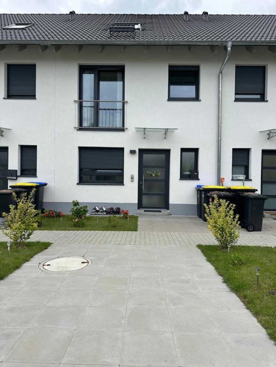 Dieses moderne Reihenhaus (Bj. 2022) überzeugt durch seine klare Architektur, hochwertige Ausstattung und das einladende, lichtdurchflutete Wohnkonzept. Die elegante Fassade mit anthrazitfarbenen Akzenten unterstreicht den modernen Charme.