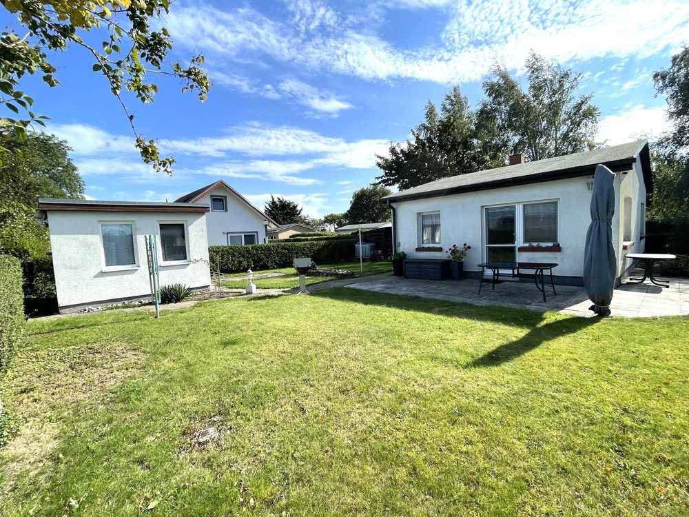 Der 1970 errichtete Bungalow wurde Anfang der 90ziger Jahre komplett in Massivbauweise neu aufgebaut und in den letzten Jahren ständig modernisiert. U. a. wurde eine Außendämmung angebracht, um den Bungalow auch in der kälteren Jahreszeit nutzen zu können.