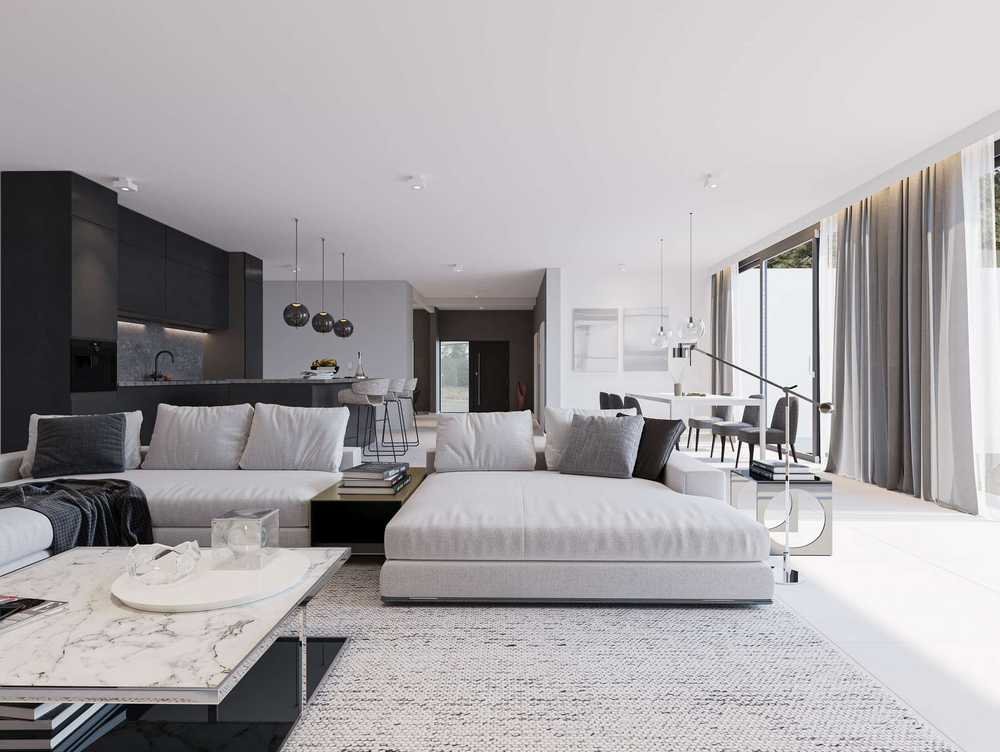 Das Haus selbst beeindruckt durch seine klare, durchdachte Architektur und einen besonderen Grundriss, der Offenheit und Geborgenheit zugleich vermittelt. Bodentiefe Fenster durchfluten die Räume mit Licht und verbinden Innen- und Außenraum auf harmonische Weise. Der großzügige Wohnbereich mit seinem charakteristischen Loftcharakter und der offene Kamin im Entrée schaffen eine warme, einladende Atmosphäre – perfekt, um Gäste zu empfangen oder ruhige Abende zu genießen.