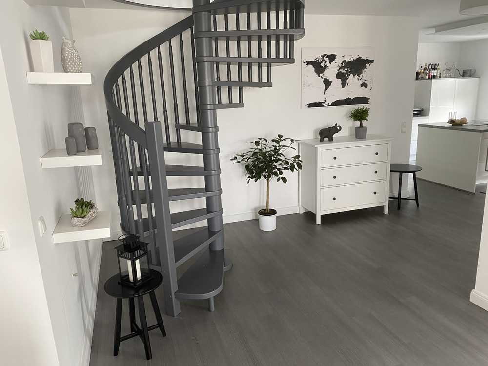 Diese exklusive Maisonette-Wohnung mit ca. 124 m² Wohnfläche befindet sich im 3. Obergeschoss eines charmanten Duplex-Gebäudes in Hameln und wird ab dem 12.10.2025 bezugsfrei sein. Die Wohnung wurde kürzlich modernisiert und besticht durch eine gehobene Innenausstattung. Sie ist sehr hell und offen gestaltet und verfügt daher über 2,5 Zimmer und 2 Badezimmer, wobei das Gäste-WC zusätzlichen Komfort bietet. Die Küche ist vollausgestattet und die Wohnfläche erstreckt sich über zwei Etagen, was ein großzügiges Raumgefühl vermittelt. Küche und Wohnbereich werden durch eine eingezogene, freistehende Wand getrennt, in die ein großer, drehbarer Fernseher eingebaut ist. Ein Balkon lädt zum Entspannen ein. Zudem gibt es im unteren Teil der Wohnung ein weiteres Zimmer (Gästezimmer/Kinderzimmer/Arbeitszimmer).
