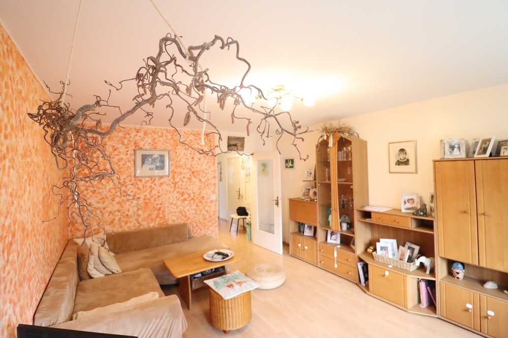 Das große Wohnzimmer mit Zugang zum sonnigen Westbalkon ist der zentrale Treffpunkt der Wohnung und lädt zum Entspannen ein.