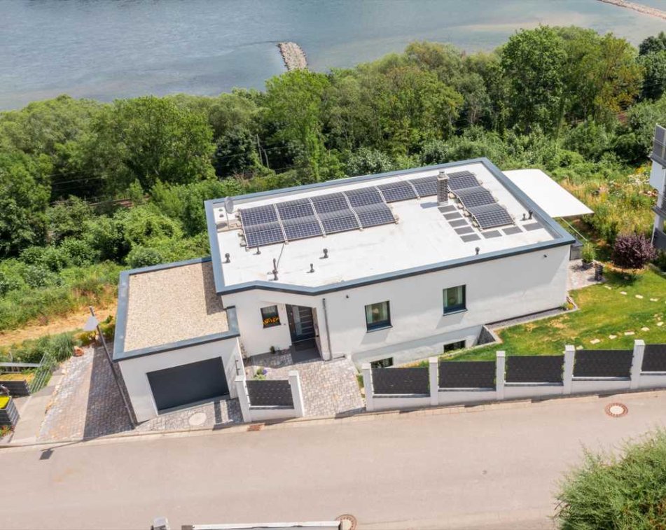 Das hochwertige Einfamilienhaus präsentiert sich in einer erstklassigen Lage und mit einem wunderschönen Panoramablick über den Rhein.