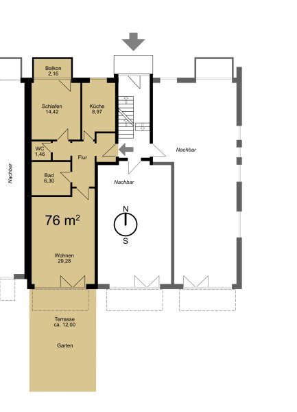 • Etage: Hochparterre (nur wenige Stufen am Hauseingang)