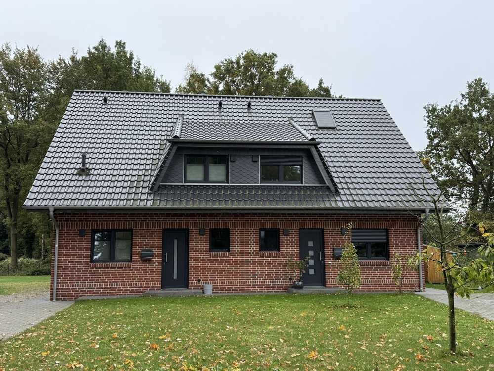 Diese Doppelhaushälfte in Sauensiek wurde im Jahr 2021 nach KfW 55 Standard gebaut. Es handelt sich hierbei um ein besonderes Objekt mit diversen Extras und einem besonderen Grundriss, der seinen Fokus auf Räume und Platz legt.