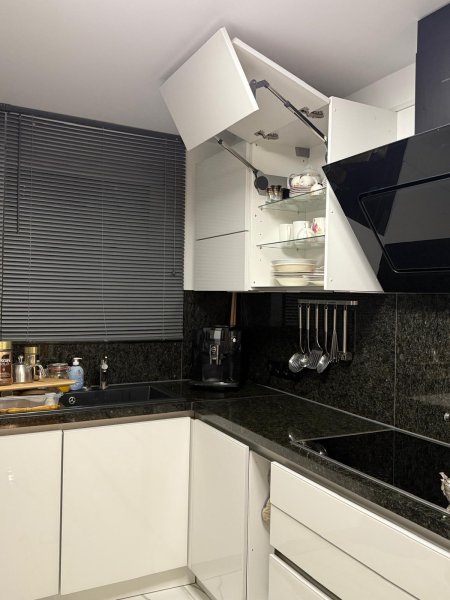 Die Wohnung überzeugt durch exklusive Ausstattungsdetails wie venezianische Spachteltechnik an allen Wänden, eine moderne Einbauküche mit Granitarbeitsplatte und hochwertigen Elektrogeräten sowie einen großzügigen Balkon mit Blick ins Grüne.