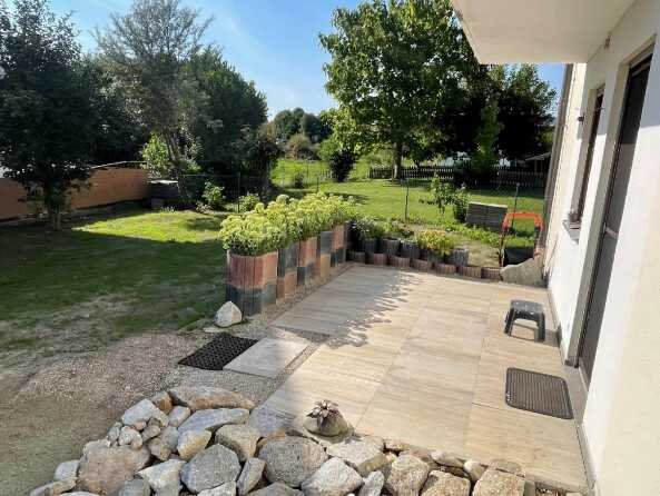 Besonders hervorzuheben ist der neu gestaltete Garten (Erneuerung vor ca. 2 Jahren) mit einer hochwertig gefliesten Terrasse aus edlen Keramikfliesen – ein idealer Ort zum Entspannen oder für gesellige Stunden im Freien.