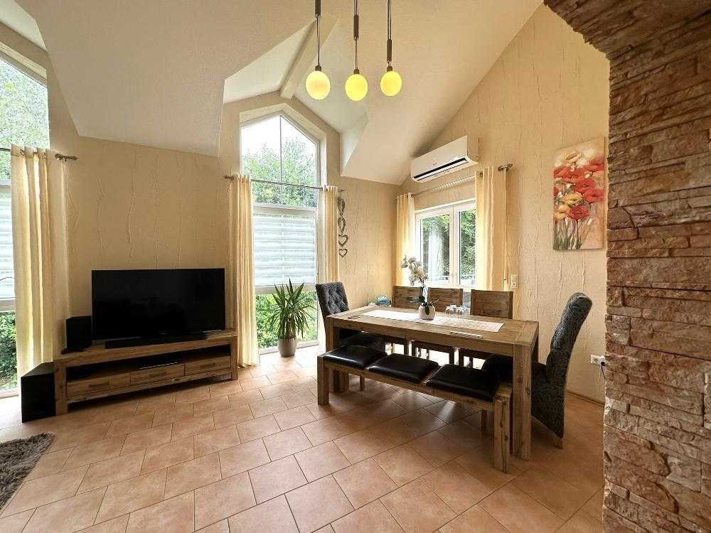 Diese architektonische Meisterleistung überzeugt durch ihre einzigartigen Giebelfenster im Wohnbereich und die beeindruckende Überhöhe der Decke, die ein großzügiges Raumgefühl vermittelt. Eine wahre Wohlfühloase, die durch ihre Nähe zum Naturpark Pfälzer Wald, nur 100 Meter vom Haus entfernt, zusätzlich an Attraktivität gewinnt.