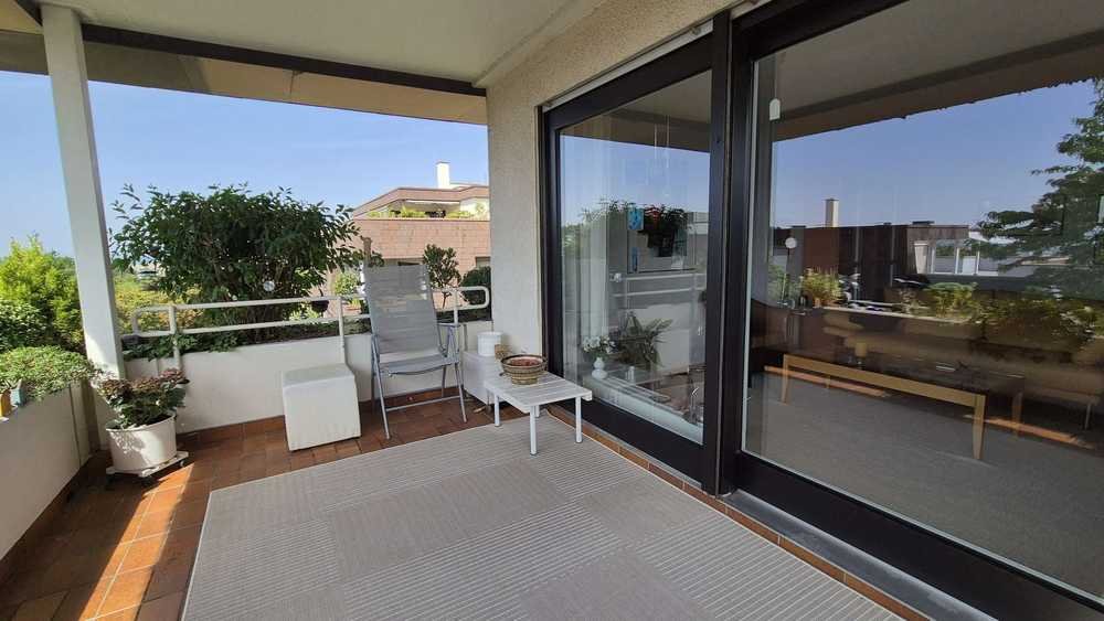 Vom großzügig geschnittenen Wohnzimmer aus haben Sie Zugang zum Balkon und Schlafzimmer. Der Balkon ist gen Westen ausgerichtet, bekommt aber auch etwas Mittagssonne ab. Die große Panorama-Schiebetüre lässt Balkon und Wohnzimmer miteinander verschwimmen.
