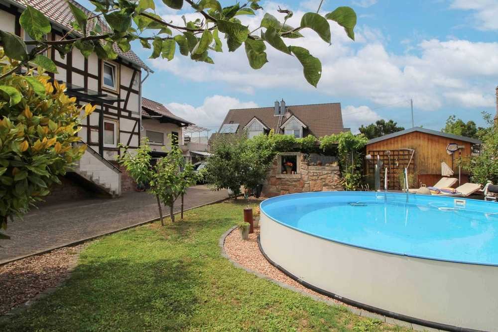 Ein besonderes Highlight dieser Immobilie ist der liebevoll angelegte Außenbereich. Das ca. 560 m² große Grundstück bietet eine grüne Oase mitten im Ort: Der gepflegte Garten begeistert mit mehreren gemütlichen Sitzplätzen, idyllischen Ecken zum Verweilen sowie einem großen Pool, der eine entspannte Urlaubsatmosphäre schafft. Die Erdgeschosswohnung verfügt zudem über einen großzügigen, überdachten Balkon mit Blick in den Innenhof – ein Ort zum Genießen und Abschalten.