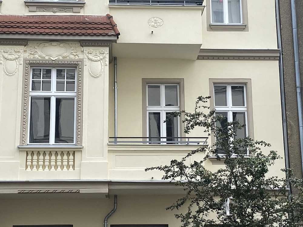 Die charmante 3-Zimmer-Wohnung befindet sich in der 1. Etage des Vorderhauses eines schönen Jugendstilhauses, dass durch seine angenehmen Proportionen und die sorgfältig und stilgerecht sanierte Fassade beeindruckt. Das Gebäude umfasst nur ein Vorderhaus und öffnet sich nach hinten zu einem begrünten Hof.