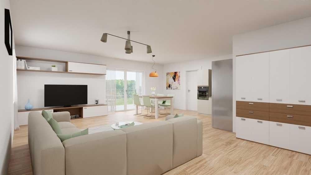 • Die Nass- und Wohnräume werden mit hochwertigen Fliesen und Vinylboden nach Wahl ausgestattet