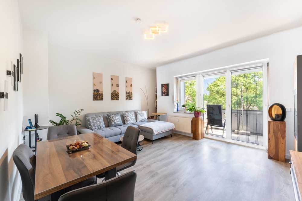 Die Wohnung befindet sich in einem gepflegten Zustand, verfügt über zweifach verglaste Kunststofffenster und besitzt einen Vinylboden in Holzoptik. Die Wohnung wird bezugsfrei übergeben und eignet sich besonders für einen Mehrpersonenhaushalt, sodass das Zimmer mit zweitem Bad und zusätzlicher Küchenzeile für ausreichend Privatsphäre sorgt.
