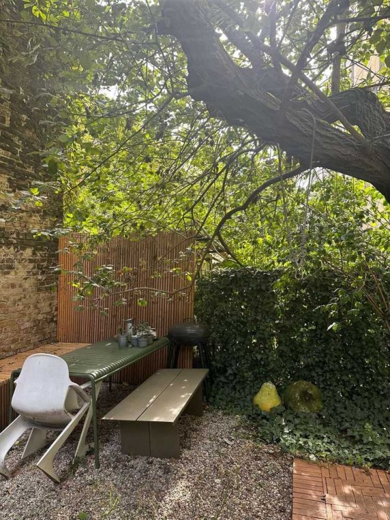Der Kamin im Zentrum der Wohnung, zwischen Küche und Wohnzimmer, das alte, aufgearbeitete Parkett und die beiden herrlichen Gärten, vor und hinter der Wohnung lassen sofort ein Gefühl von Ruhe und Geborgenheit entstehen.