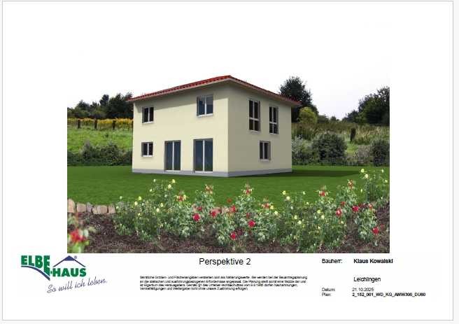 Dieses innovative Elbe-Haus® wird in massiver Bauweise von qualifiziertem Fachpersonal errichtet. Wir planen und projektieren nach Ihren Vorstellungen und Wünschen und somit ist wirklich jedes Haus einzigartig. Beachten Sie bitte, dass das abgebildete Haus lediglich ein Bebauungsbeispiel ist. Das Grundstück kann unter Berücksichtigung der örtlichen Bauvorschriften mit Ihrem Wunschhaus von Elbe-Haus® errichtet werden.