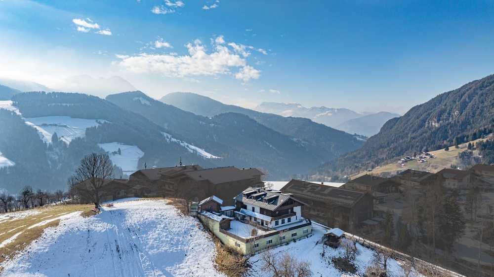 Imposant thront die Liegenschaft auf einem Hügel, umgeben von Landwirtschaft, eingebettet in die Kitzbüheler Alpen, aber trotzdem nahe zur Deutschen Grenze.