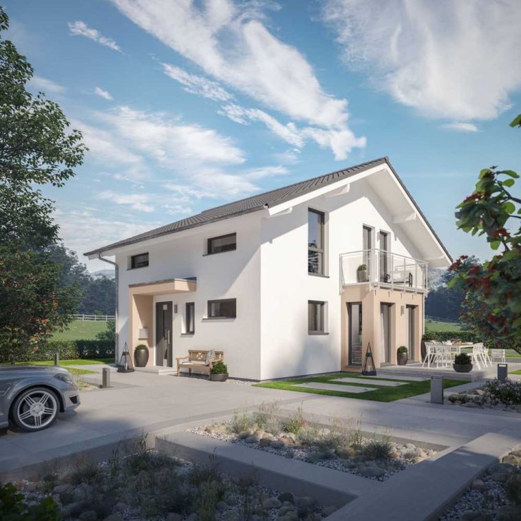 Gibt es das noch - das klassische Einfamilienhaus mit Satteldach und weiten Dachüberständen, das sich in jedes Baugebiet harmonisch einpasst? Ein Haus, das einfach immer eine gute Figur macht - ganz ohne Schnörkel und aufwendige Spielereien? Die Antwort lautet: Ja! Aber im Jahr 2022 darf es sich ruhig etwas moderner und frischer präsentieren als seine Kollegen aus den vergangenen Jahrzehnten. So wie dieses elegante Fertighaus. Der schlichte, weiß verputzte Baukörper wird durch einen farblich abgesetzten Rechteck-Erker mit Balkon und eine Eingangsüberdachung im L-Design akzentuiert. Im Innern heißt es: Eintreten und durchatmen. Denn im Preis jedes Bien-Zenker Hauses inbegriffen ist ein ökologischer Wandaufbau, der für ein positives, wohngesundes Raumklima sorgt. Die Basis bildet der Naturbaustoff Holz, der um weitere umweltfreundliche Materialien ergänzt wird. Zum Wohlfühlen lädt auch die Raumaufteilung, die sich an den Bedürfnissen einer vierköpfigen Familie orientiert, ein. Den zukünftigen Bewohnern stehen mehr als 145 m² zur Verfügung, die sich in weitläufige Gemeinschaftsräume und individuelle Ruhezonen gliedern. Alltagsmittelpunkt ist der offen angelegte Wohn-, Ess- und Kochbereich im Erdgeschoss, der über bodentiefe Fenster und Balkontüren in ein luftig-leichtes Ambiente getaucht wird. Besonders schön sind die ausladenden Freiflächen zwischen den einzelnen Funktionszonen: Hier kann der Nachwuchs sein Spielzeug nach Herzenslust auf dem Fußboden ausbreiten, ohne dass es zu eng wird. Und die Eltern haben die Kleinen beim Spielen immer im Blick. Komplettiert wird das Raumangebot der unteren Ebene durch einen Technik- bzw. Hauswirtschaftsraum und ein Gäste-WC. Eine formschöne, halbgewendelte Treppe führt hinauf in das Dachgeschoss, wo sich zwei gleich große Kinderzimmer, ein Schlafraum mit angeschlossener Ankleide und das Familienbad befinden. Dank der flachen Dachneigung setzen die Dachschrägen erst ab einer Höhe von 1,60 m an. Das eröffnet einen großen Spielraum bei der Einrichtung der Räume.
