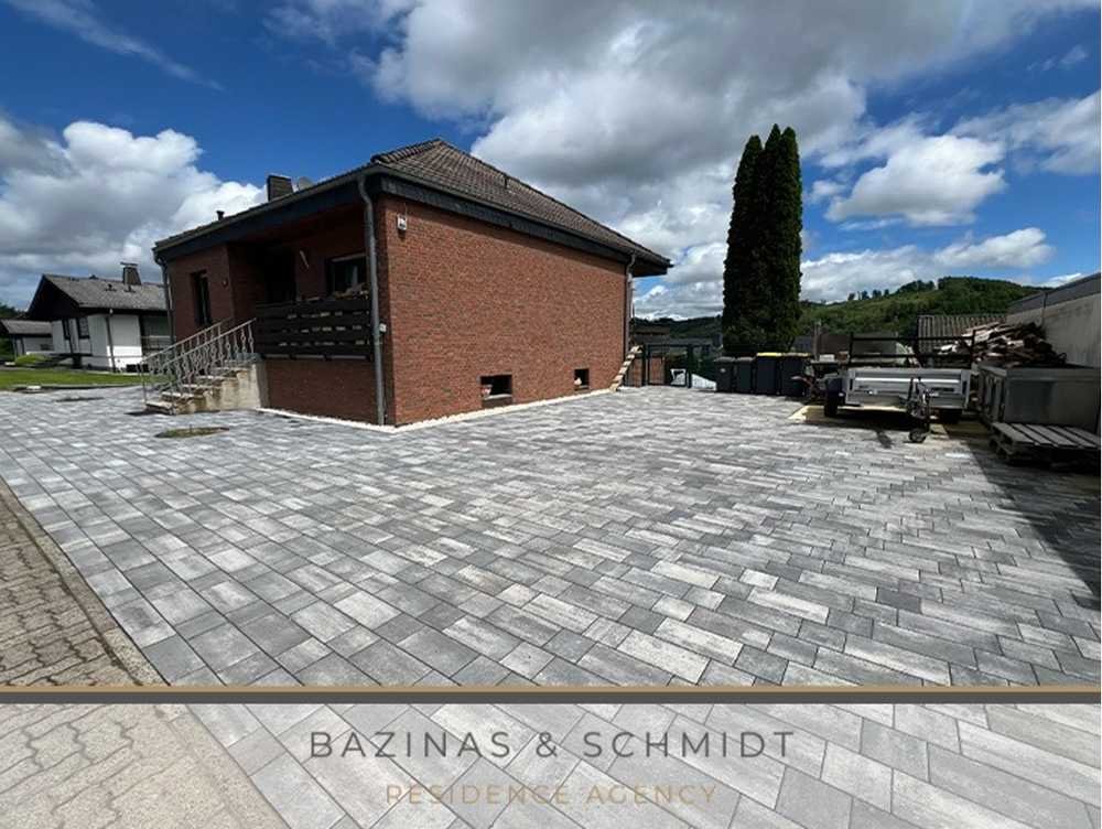 Das Haus verfügt über einen großzügigen Balkon im hinteren Bereich mit ca. 35 m², der einen wunderbaren Ausblick auf das umliegende Grün bietet. Ein kleinerer Balkon nach vorne ergänzt die Freiflächen. Im Souterrain befindet sich eine beeindruckende Terrasse von über 60 m², die neu gepflastert und top gepflegt ist.