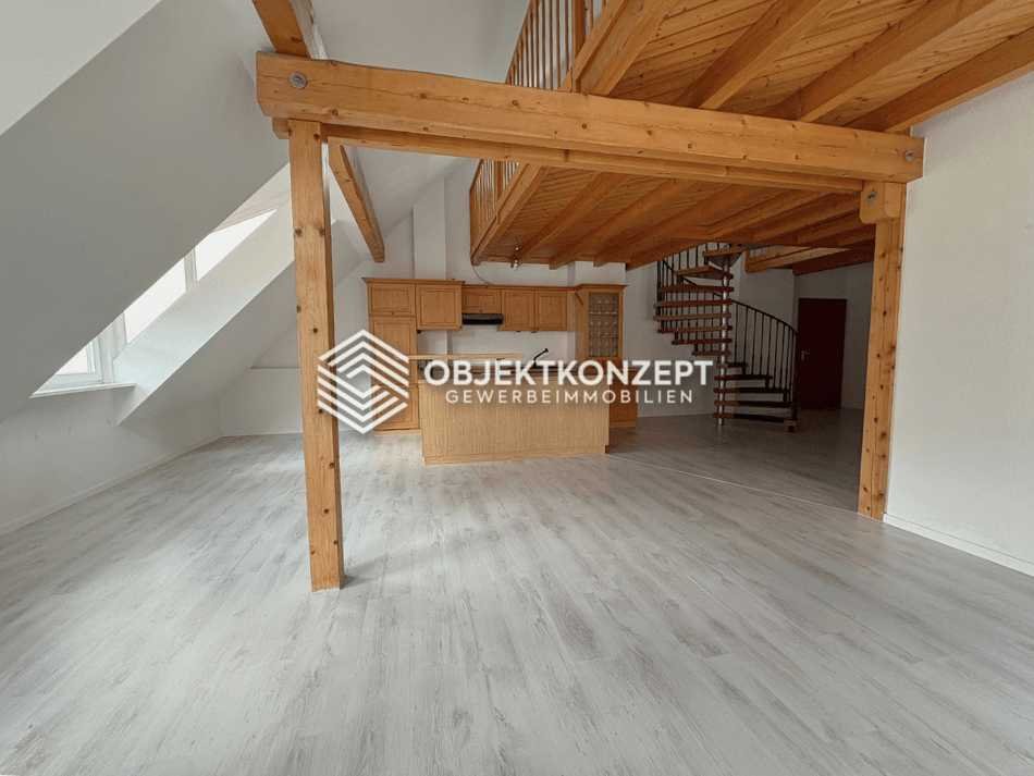 Über eine elegante Wendeltreppe erreichen Sie die offene Galerieebene, die den Charakter der Wohnung unterstreicht. Ob als Rückzugsort, Arbeitsbereich oder Atelier – dieser lichtdurchflutete Bereich bietet vielseitige Nutzungsmöglichkeiten und schafft ein offenes, großzügiges Raumgefühl.