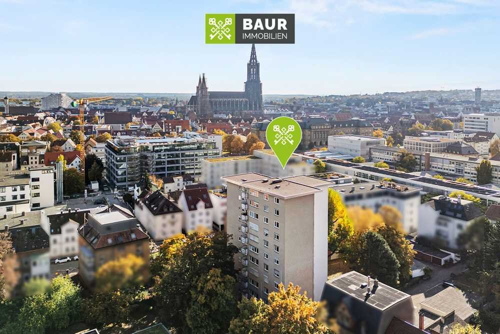 Wer vom Balkon aus direkt auf das Ulmer Münster blicken möchte, findet in dieser 2-Zimmer-Wohnung auf ca. 57 m² Wohnfläche ein urbanes Plätzchen mit Ausblick. Jeden Tag ein Postkartenmotiv vor Augen und jeden Abend wird der Münsterblick zum besten Hintergrund für Ihre eigenen Geschichten. Die Wohnung befindet sich im 7. Obergeschoss eines Mehrfamilienhauses aus dem Baujahr ca. 1959 und ist bequem über einen Aufzug erreichbar. Sie verfügt über einen durchdachten Grundriss mit einem hellen Wohnbereich, einem Schlafzimmer sowie einem funktionalen Badezimmer, das vor etwa zwei Jahren modern gefliest wurde. Ein praktischer Kellerraum bietet zusätzlichen Stauraum, während die Beheizung über Fernwärme erfolgt und somit für angenehme Wärme sorgt.