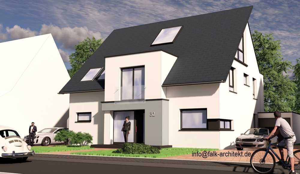 Vermesser hat unser Architekt ein Haus geplant, dass exakt auf dieses Grundstück zugeschnitten ist.