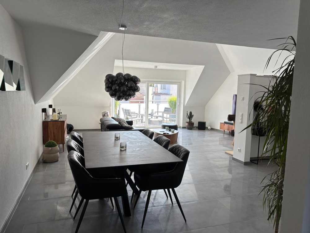 Inmitten des gewachsenen Ortskerns präsentiert sich diese moderne Dachgeschoss-Maisonettewohnung als stilvolles Zuhause für alle, die Wert auf Architektur, Licht und Großzügigkeit legen.