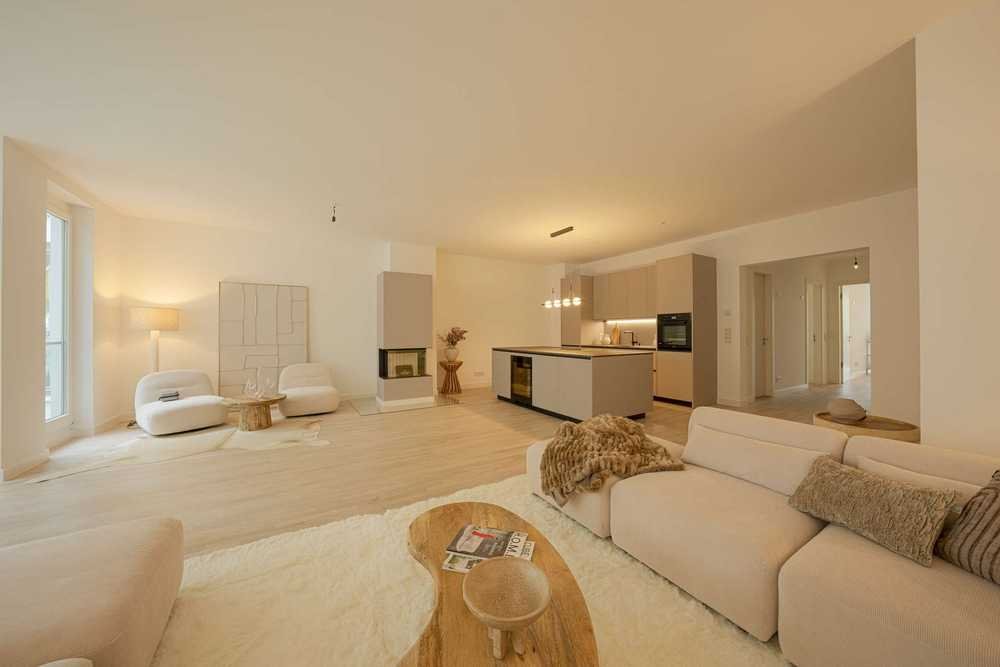Diese frisch und hochwertig sanierte Wohnung überzeugt durch ihre luxuriöse Ausstattung und den durchdachten Grundriss. Auf rund 140 m2 erwarten Sie helle, weitläufige Räume mit hell gebeiztem Eichenholzparkett und moderner Fußbodenheizung. Das Zentrum bildet der offene Wohn- und Essbereich, der mit einer eleganten Valcucine-Designküche, Natursteinplatte sowie einem Kamin und großzügigen Fensterfronten beeindruckt – ein herausragendes Ensemble für stilbewusstes Wohnen.