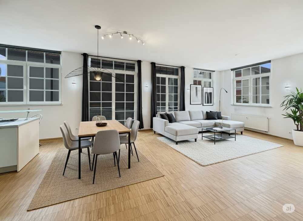 Die großzügige 3,5-Zimmer-Wohnung im 1. Obergeschoss überzeugt durch ihren offenen Grundriss und den charakteristischen Loft-Charme. Auf rund 114 m² Wohnfläche bietet sie ein modernes und zugleich komfortables Zuhause für Singles, Paare oder kleine Familien.
