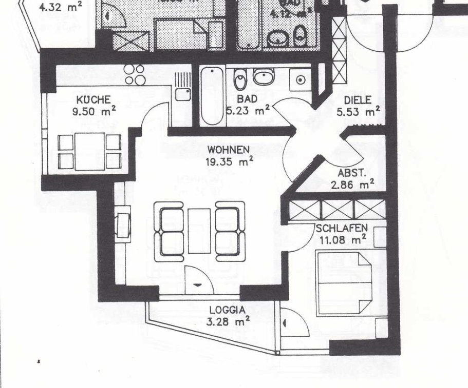 Die im Kaufpreis enthaltene Einbauküche befindet sich in einem separaten Raum mit Fenster – ideal für ein komfortables Kocherlebnis. Ein praktischer Abstellraum innerhalb der Wohnung sorgt für zusätzlichen Stauraum und hilft, Ordnung zu halten. Das Badezimmer ist funktional ausgestattet mit Badewanne, Waschbecken und WC und erfüllt alle Bedürfnisse des täglichen Lebens.