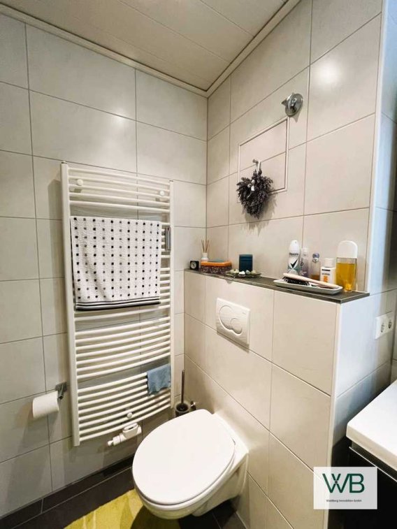 Das gepflegte Badezimmer sorgt mit seinen stilvollen Details für einen gelungenen Start in den Tag. Der Keller bietet zusätzlichen Stauraum und rundet das Platzangebot sinnvoll ab.