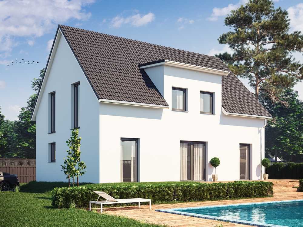 Erweitert wird er durch die offene Küche mit genügen Platz. Das Erdgeschosses weitet sich mit einem Gäste- oder Hobbyzimmer aus und knn für sämtliche Zwecke Ihrer Wahl verwendet werden sowie das Gäste-WC. Zusätzlichen Raum bietet Ihnen die Abstellkammer und der HAR.
