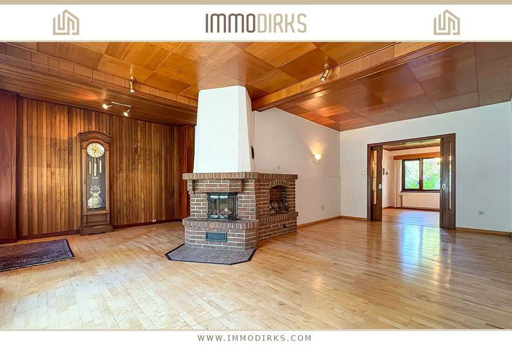 Das Wohnzimmer beeindruckt mit klassischem Parkettboden, der dem Herzstück des Hauses Eleganz und Behaglichkeit verleiht, während ein großzügiger Kamin an kühlen Abenden wohlige Wärme spendet. Hier verbinden sich Tradition und modernes Wohnen auf harmonische Weise – ein Haus, das Charakter zeigt und zugleich Raum für Ihre eigenen Vorstellungen lässt.