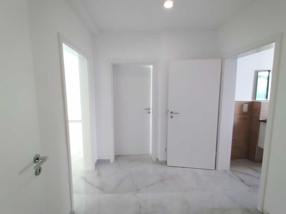 Die stilvolle Küche, die Sie durch eine elegante Terrassentür erreichen, erfüllt höchste Ansprüche und lässt keine Wünsche offen. Von der Diele aus gelangen Sie in ein modernes Badezimmer, das mit einer einladenden Dusche und einem luxuriösen Whirlpool ausgestattet ist. Ein praktischer Hauswirtschaftsraum bietet Ihnen zudem zusätzlichen Stauraum.
