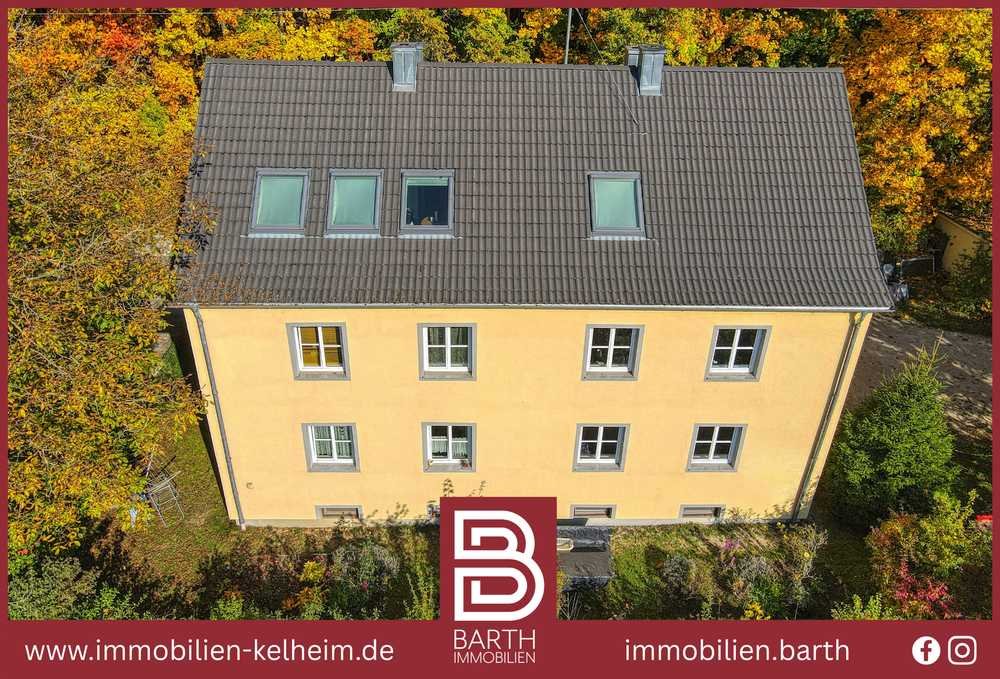 Dieses 1953 in Ziegelbauweise errichtete Mehrfamilienhaus liegt in einer zentralen Lage von Kelheim, unweit des Altmühlkanals. Es befindet sich auf einem 4.852 m² großen Grundstück, teils in Hanglage, unterteilt in 1.400 m² Wohngebiet und 3.452 m² landwirtschaftliche Fläche, wovon etwa 600 m² bewaldet sind.