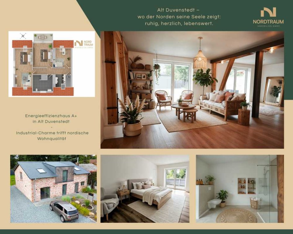 An einem Ort mit Geschichte entsteht ein Zuhause mit Zukunft: Wo einst der Kornspeicher von Alt Duvenstedt stand, steht heute dieses stilvolle und energieeffiziente Zweifamilienhaus – eine Hommage an die industrielle Vergangenheit des Dorfes, modern interpretiert in Architektur, Raumgefühl und Ausstattung.