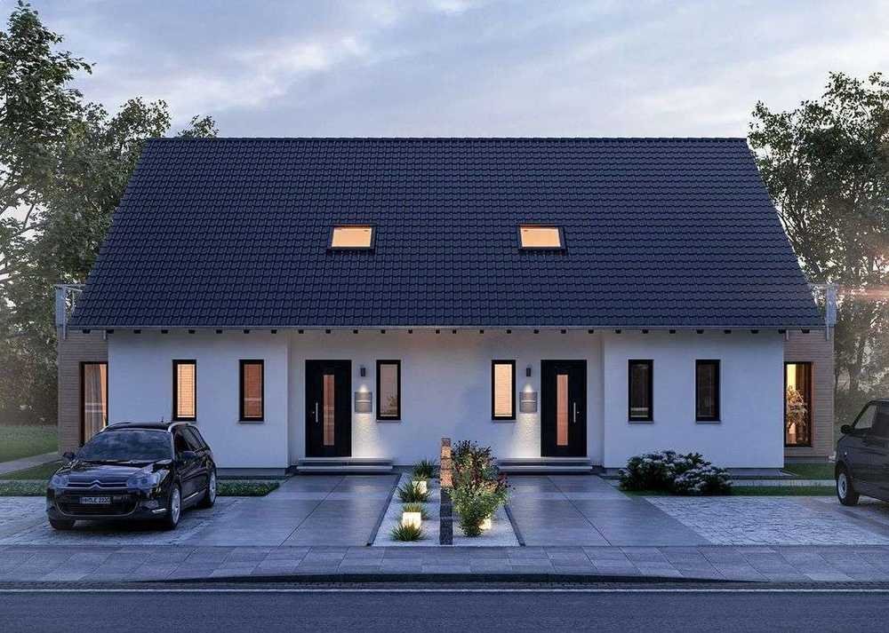 Das Doppelhaus TwinStyle 13.02 S beeindruckt mit seiner Nettogrundfläche von ca. 139 m² und lässt eine geschickte Raumaufteilung für die Verwirklichung individueller Wünsche zu. Im Erdgeschoss wurde der Wohn- und Essbereich und die Küche gekonnt miteinander verbunden. Im Obergeschoss unter dem Satteldach befinden sich ein Elternschlafzimmer, zwei Kinderzimmer sowie ein gemeinsames Badezimmer. Eine Dreifachverglasung der Fenster zusammen mit der energieeffizienten Bauweise sorgen für niedrige Nebenkosten.