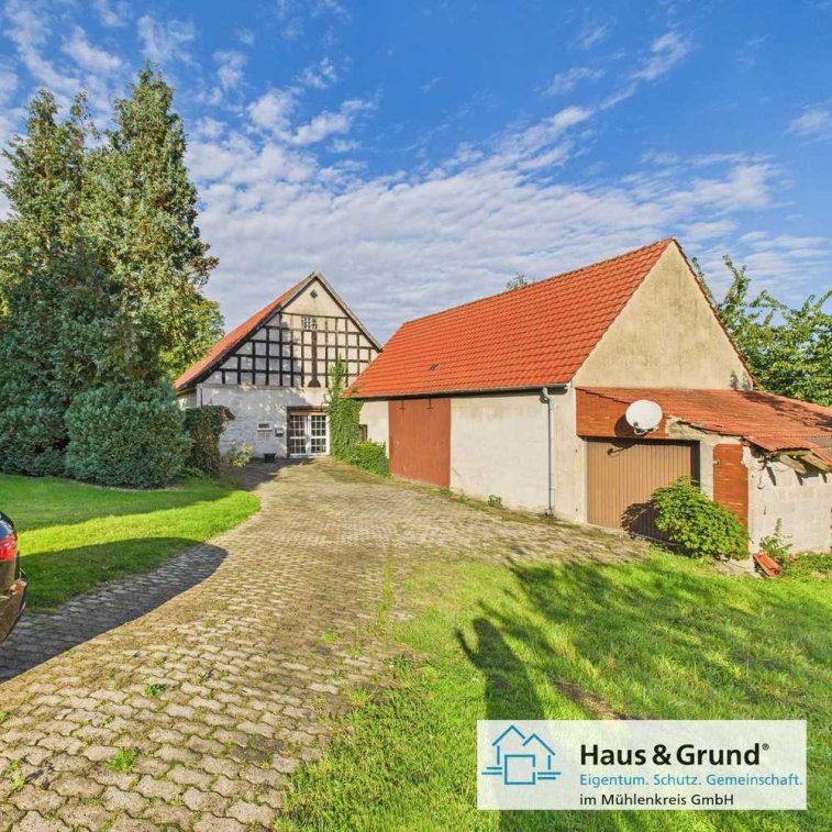 Das Hauptgebäude wurde im ca. Jahr 1908 errichtet und verfügt über rund sechs Zimmer, die sich auf einer Etage verteilen. Das Wohnobjekt befindet sich in einem ausbaufähigen Zustand und bedarf einer Sanierung – ideal für Käufer, die ein Projekt nach eigenen Vorstellungen realisieren möchten. Ergänzt wird das Wohnhaus durch eine großzügige Scheune mit Anbau aus dem Jahr 1963 sowie eine separate Garage, die zusätzliche Nutzungsmöglichkeiten bietet.