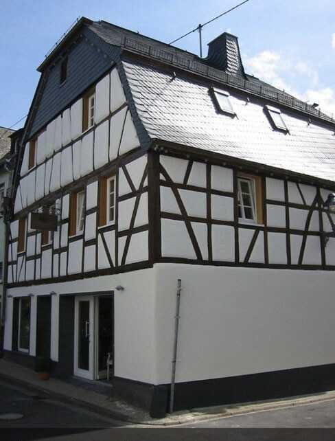 Das historische Fachwerkhaus, genutzt als Wohn- und Geschäftshaus, bietet eine vielseitig nutzbare Gewerbeeinheit im Erdgeschoss sowie zwei Wohneinheiten in den oberen Etagen. Die rund 60 m² große Gewerbeeinheit eignet sich ideal für Büro, Praxis oder Agentur. Hier findet man noch einige ursprüngliche Elemente aus vergangenen Zeiten. Im 1. OG liegt eine ca. 70 m² große, hochwertig ausgestattete Wohnung mit moderner Einbauküche. Das Dachgeschoss beherbergt eine weitere, ca. 60 m² große Wohnung, ebenfalls mit Einbauküche sowie Zugang zum Spitzboden. Im hinteren Bereich der Immobilie befindet sich ein kleiner, gepflegter Hof. Von hier aus erreichen die Mieter ihre Wohnungen über eine großzügige Außentreppe mit Balkon für beide Wohneinheiten.