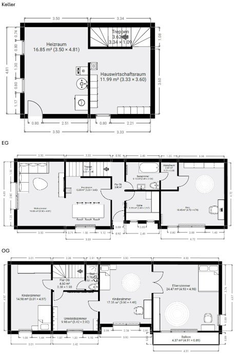 • Untergeschoss: Heiz- und Hauswirtschaftsraum, Hobbyraum, direkter Zugang zur ersten Terrasse